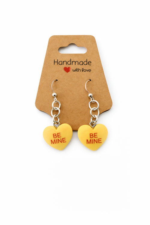 Be Mine Dangle Earrings – Yellow Candy Hearts | Sensitive Ears Safe